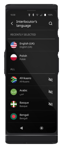 Med Vascos talöversättare kan du tala och översätta på 82 språk, direkt! Tala in i mikrofonen så lyssnar enheten och översätter dina ord till det valda språket.
