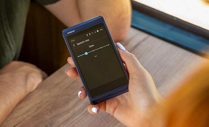 Justera uppspelningen efter dina behov. Sakta ner för att fånga varje detalj, eller öka tempot när du har bråttom. Vasco följer ditt tempo så att inget går förlorat i översättningen.