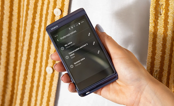 För dig som gillar valmöjligheter. Utöver den banbrytande funktionen Vasco My Voice kan du även välja en klassisk manlig eller kvinnlig röst som läser upp översättningarna. På så sätt kan du anpassa tonen efter situationen. Föredrar du en mer formell röst för affärsmöten, eller något varmare för samtal med familjen? Din översättare, dina regler.